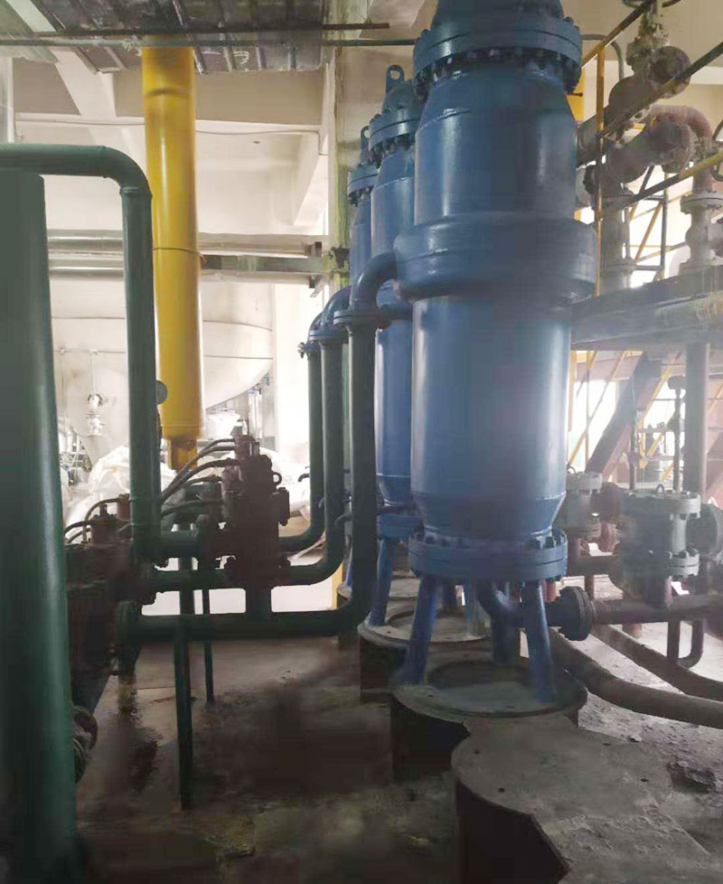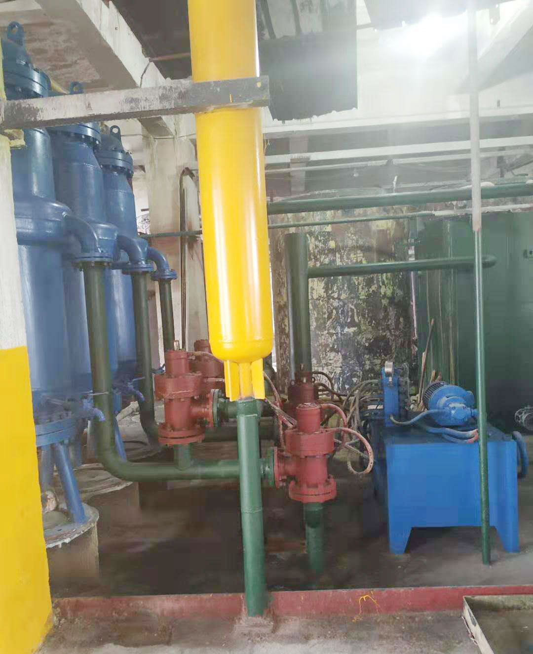 化工廠和氧化鋁廠,有些提煉工藝,采用反應釜或管道的低溫或高溫溶出工藝,低溫溶出200攝氏度以下,高溫溶出近300攝氏度,要求設備適應高溫高壓 ,低溫溶出壓力要求3—4Mpa,高溫溶出要求7—10Mpa.并且壓力要穩定,波動要小,要保證反應釜工作壓力不低于該溫度下的水的飽和蒸氣壓,這可能是固體物料水力輸送中,要求最嚴刻的工況。我們為湖北化學工業公司先后生產七臺高壓釜喂料泵,流量從20m3/h到40m3/h,揚程4.0Mpa到8Mpa,該公司的水隔膜泵采取了穩壓措施,隔膜采取了特殊處理。從2012年開始,他們前后訂了七臺水隔膜泵,用戶使用比較滿意。