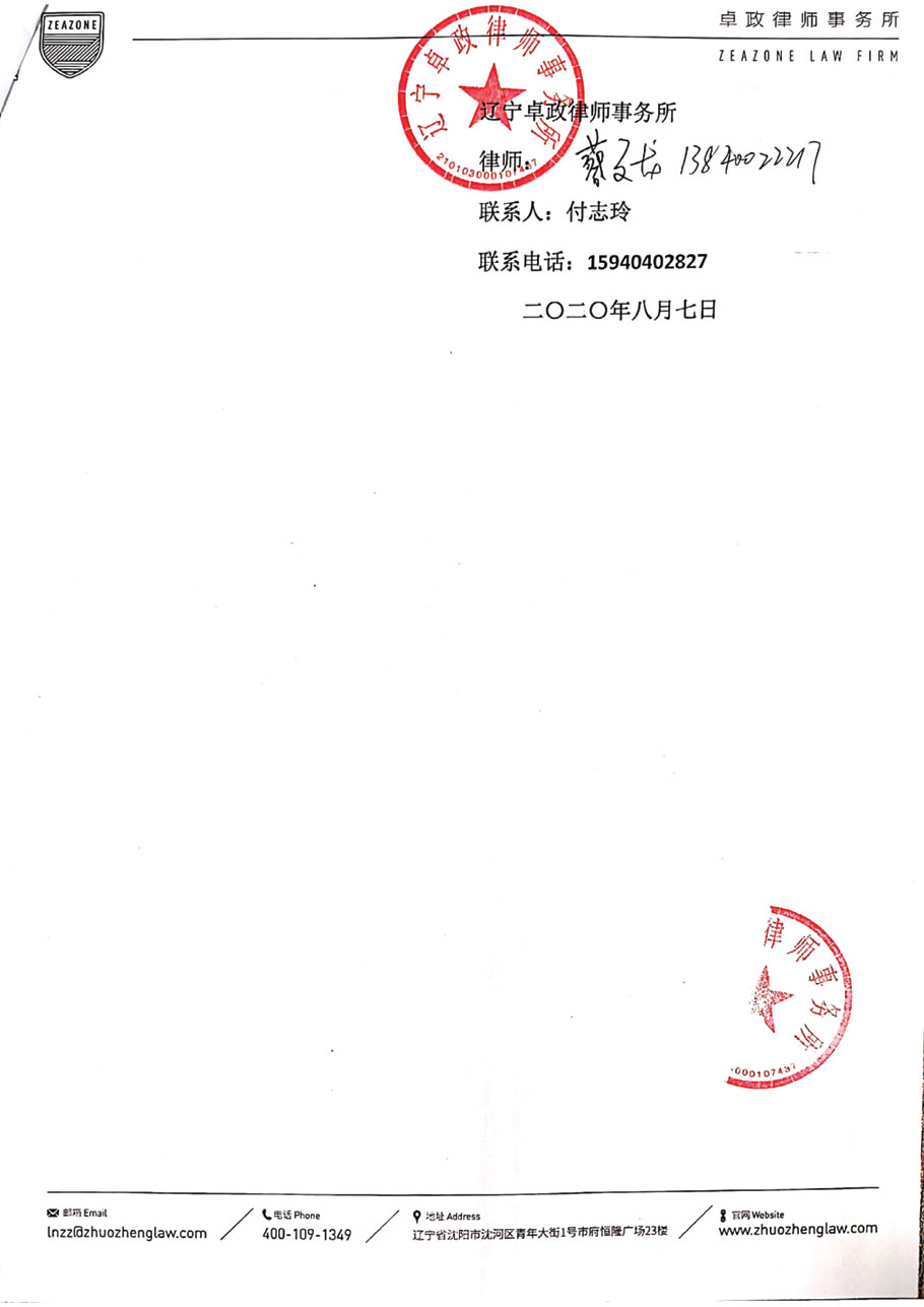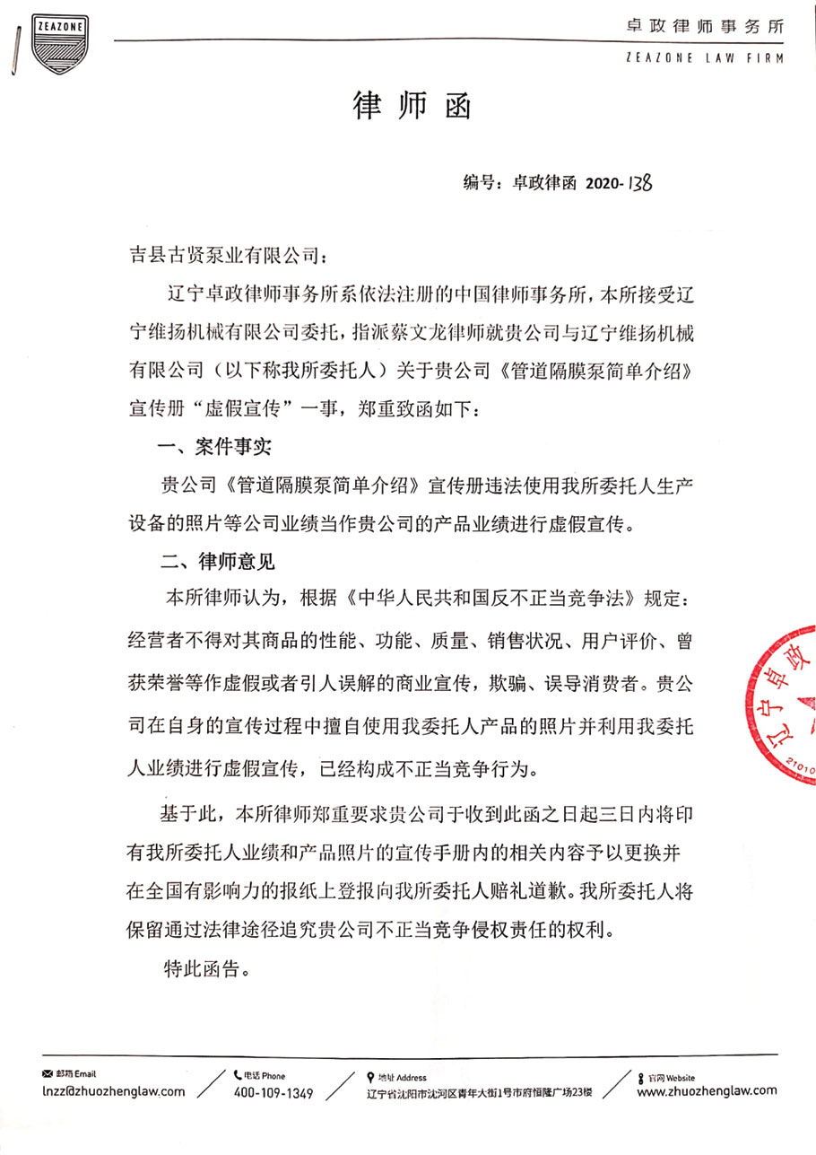 遼寧維揚機械有限公司 特殊聲明 律師函
